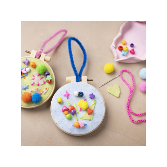 Objevte radost z tvoření s touto krásnou sadou, která dětem umožní vytvořit barevné závěsné dekorace z pomponků, plstě, korálků a výšivky. Ideální pro první seznámení s vyšíváním i jako zábavný projekt pro rozvoj fantazie a jemné motoriky. Vše, co děti potřebují v jedné krabičce: • Materiál pro výrobu 3 závěsných dekorací – skvělé do okna, na zeď nebo jako dárek • Děti využijí výšivkový rámeček jako rám, do kterého tvoří vlastní obrazce • Stačí smíchat barevné příze, plstěné tvary, korálky a pomůcky a pustit se do tvoření Zábava a rozvoj dovedností: • Skvělý způsob, jak se naučit základy vyšívání a tvůrčího kombinování materiálů • Rozvíjí jemnou motoriku, soustředění a kreativitu • Projekt vhodný pro děti od 5 let – jednoduchý, bez nutnosti předchozích zkušeností Obsah balení: 1× výšivkový rámeček 1× jehla na křížkový steh Plstěné tvary Barevná příze Korálky Chlupaté drátky Pom-pomy Podrobný návod Vhodné pro děti od 5 let.