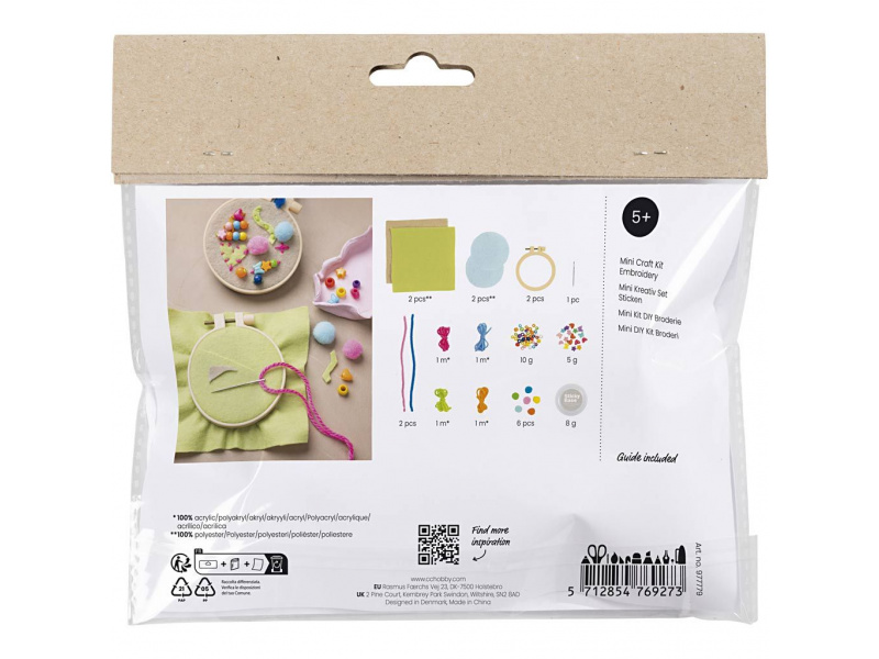 Objevte radost z tvoření s touto krásnou sadou, která dětem umožní vytvořit barevné závěsné dekorace z pomponků, plstě, korálků a výšivky. Ideální pro první seznámení s vyšíváním i jako zábavný projekt pro rozvoj fantazie a jemné motoriky. Vše, co děti potřebují v jedné krabičce: • Materiál pro výrobu 3 závěsných dekorací – skvělé do okna, na zeď nebo jako dárek • Děti využijí výšivkový rámeček jako rám, do kterého tvoří vlastní obrazce • Stačí smíchat barevné příze, plstěné tvary, korálky a pomůcky a pustit se do tvoření Zábava a rozvoj dovedností: • Skvělý způsob, jak se naučit základy vyšívání a tvůrčího kombinování materiálů • Rozvíjí jemnou motoriku, soustředění a kreativitu • Projekt vhodný pro děti od 5 let – jednoduchý, bez nutnosti předchozích zkušeností Obsah balení: 1× výšivkový rámeček 1× jehla na křížkový steh Plstěné tvary Barevná příze Korálky Chlupaté drátky Pom-pomy Podrobný návod Vhodné pro děti od 5 let.