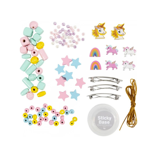 Rozvíjejte radost vašeho dítěte z kreativního tvoření s touto krásnou sadou, která dítěti umožní navrhnout a sestavit sadu šperků podle vlastní fantazie – náhrdelníky, náramky i sponky do vlasů. Spojuje kreativitu s hravou aktivitou rozvíjející jemnou motoriku a estetické cítění. Vše, co děti potřebují v jedné krabičce: • Materiál pro výrobu náhrdelníků, náramků a náušnic v jemných odstínech – kombinace světle modré, růžové a žluté • Elastická šňůrka pro jednoduché navlékání korálků bez složitých zapínání • Různé typy korálků: dřevěné, perleťové, tvarované (hvězdičky, duhy, jednorožci) – pro pestré kombinace • Lepidlo a doplňky (např. sponka do vlasů) pro kreativní možnosti rozšíření šperků • Podrobný návod s tipy, jak snadno začít a jak kombinovat různé typy korálků Zábava a rozvoj dovedností: • Učí děti princip navlékání korálků a kombinování barev, tvarů a materiálů • Rozvíjí jemnou motoriku, soustředění, trpělivost a cit pro design • Projekt vhodný pro děti od 3 let a výše – jednoduchost konstrukce zaručuje snadný start pro nejmenší tvůrce • Skvělé pro společné rodinné tvoření Obsah balení: • Korálky (různé tvary a velikosti) • Elastická šňůrka • Lepidlo • Sponky do vlasů • Podrobný návod Vhodné pro děti od 3 let.