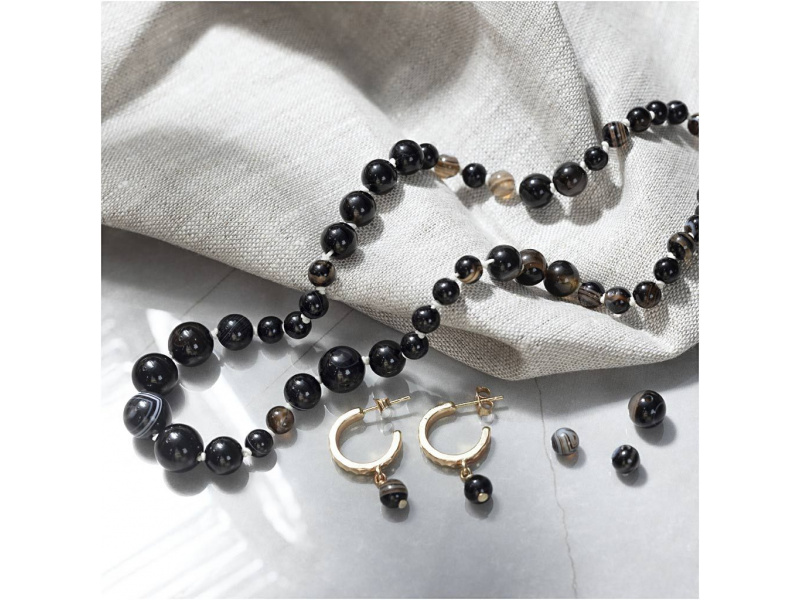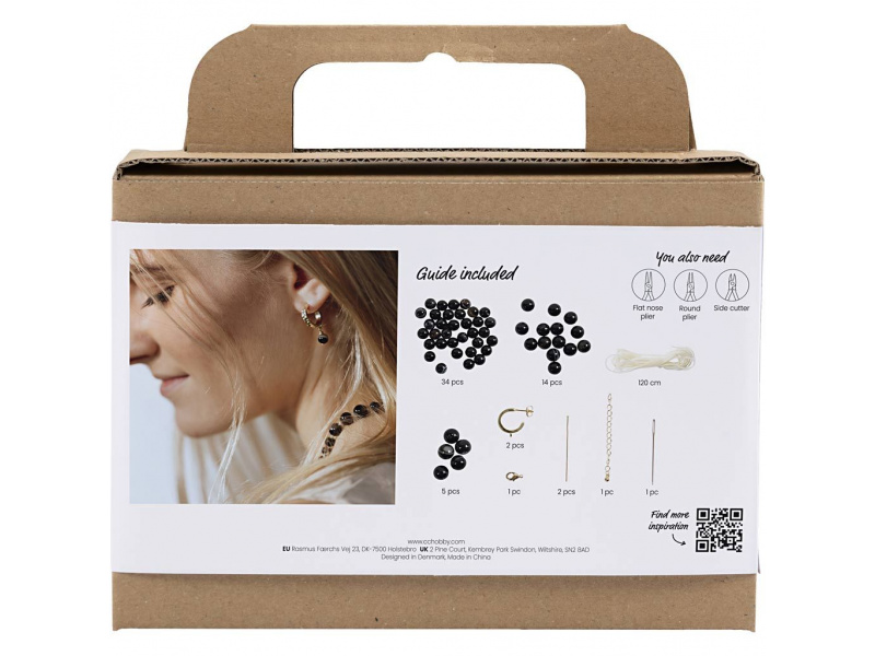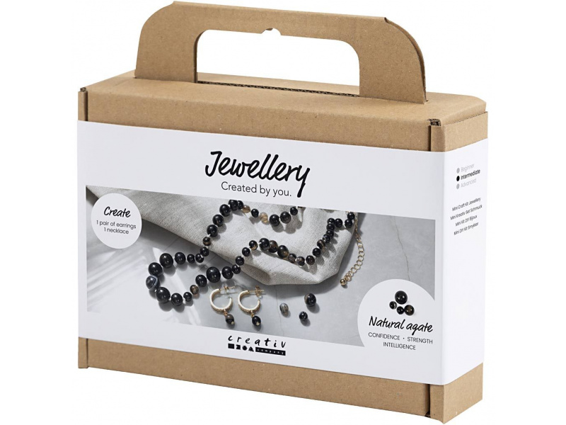 Ručně vyrobené šperky s hlubokým významem. Tato kreativní sada vám umožní vytvořit náhrdelník a pár náušnic s přírodními korálky z achátu – polodrahokamu známého svým mystickým vrstveným vzhledem a posilující energií. Silný výraz, jemné detaily: • Každý korálek z achátu je jedinečný – s černým základem a jemnými bílými pruhy • Achát symbolizuje vnitřní sílu, rovnováhu, sebedůvěru a klid • Kombinace velkých a malých korálků spolu s vázáním uzlů mezi nimi vytváří nadčasový organický vzhled Šperky, které mají hloubku i styl: • Vytvoříte 1 náhrdelník a 1 pár náušnic • Elegantní detaily dodávají šperkům profesionální vzhled • Vhodné pro tvořivé duše se zájmem o šperky s příběhem a osobitým stylem Co budete potřebovat navíc: • Kleště nejsou součástí balení – doporučujeme: ploché, kulaté a boční štípací Obsah balení: Přírodní korálky z achátu Bavlněná šňůrka Kovové kruhy Karabinka Řetízek Špendlík Návod