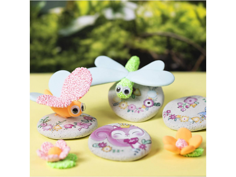 Kreativní sada pro malé tvůrce s fantazií rozvíjí představivost i jemnou motoriku dítěte. Díky speciální hmotě Stone Clay s kamenným práškem a barevným doplňkům si děti mohou vytvořit vlastní kameny a proměnit je v hravé originální dekorace. Při svém tvoření se děti mohou inspirovat přírodou kolem sebe nebo pouze vlastní fantazií, záleží jen na jejich preferencích! Tvoření, které inspiruje: • Z hmoty Stone Clay lze jednoduše vymodelovat kameny s realistickým vzhledem • Po vytvrdnutí se kameny zdobí obtisky a pěnovou i hedvábnou modelínou Foam Clay® a Silk Clay® • Děti mohou modelovat motýlky, vážky nebo vymyšlené broučky a doplnit jimi své výtvory • Hotové kameny se stanou originální ozdobou dětského pokoje Rozvoj tvořivosti hrou: • Podporuje fantazii, trpělivost a smysl pro detail • Pomáhá rozvíjet jemnou motoriku a prostorové vnímání • Nabízí volnost tvoření bez pravidel a omezení Obsah balení: • Modelovací hmota Stone Clay, Foam Clay® a Silk Clay® • Propisot obtisky • Nástroj pro přenos obtisků • Pohyblivá očička Vhodné pro děti od 5 let.