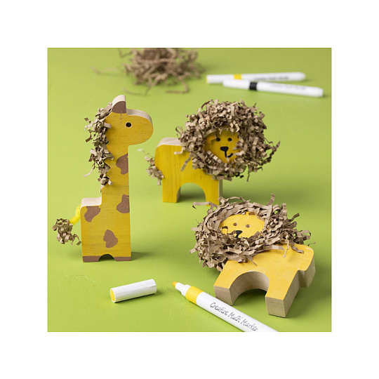 Originální sada dřevěných safari zvířátek pro dozdobení a hraní. Roztomilé figurky ze masivního dřeva si děti mohou vyzdobit podle vlastní fantazie – barvami, fixami nebo kreativními hmotami. Zvířátka jsou dost pevná na hraní a zároveň vypadají skvěle jako dekorace v dětském pokoji. Krabička obsahuje: • 10 dřevěných figurek safari zvířat (2× slon, 2× nosorožec, 2× krokodýl, 2× lev, 2× žirafa) • Pevné masivní dřevo – ideální na malování i kreativní zdobení • Figurky vhodné na hraní i jako dekorace Zábava a rozvoj dovedností: • Děti rozvíjí kreativitu a jemnou motoriku při vybarvování a zdobení • Figurky se dají upravit mnoha způsoby – každý kus může být originál Tipy na tvoření (výtvarné potřeby pro zdobení se prodávají samostatně): • namalovat hobby barvami nebo dozdobit kreativními fixami • přidat strukturu a lesk pomocí Foam Clay® nebo třpytivé hmoty • vyrobit hřívu či srst z natrhaného papíru nebo příze Rozměry zvířátek: výška 3-14,5 cm, tloušťka 2 cm Výtvarné potřeby pro zdobení zvířátek nejsou součástí balení. Vhodné pro děti od 3 let.