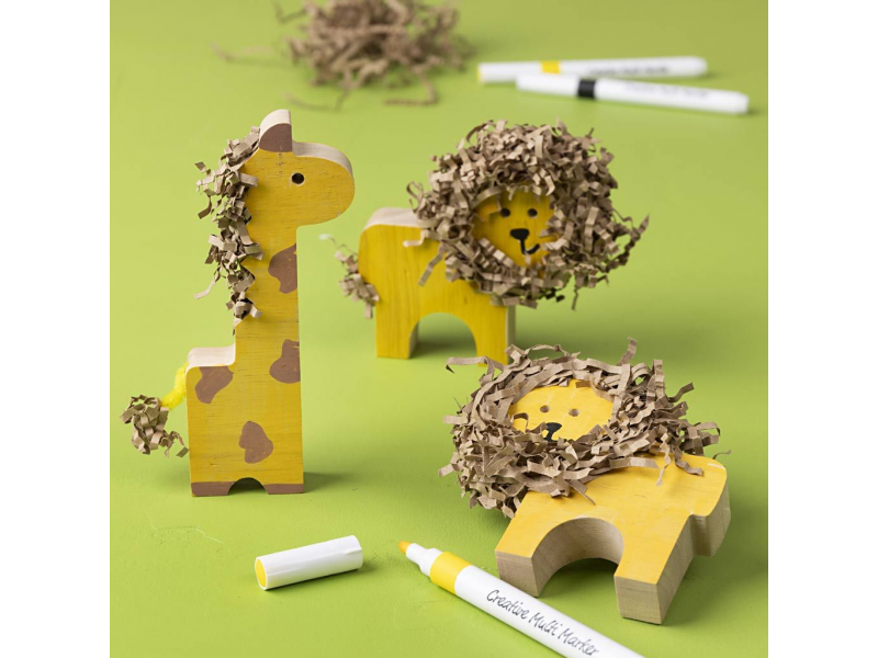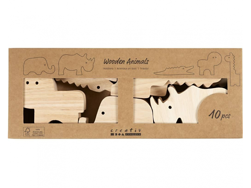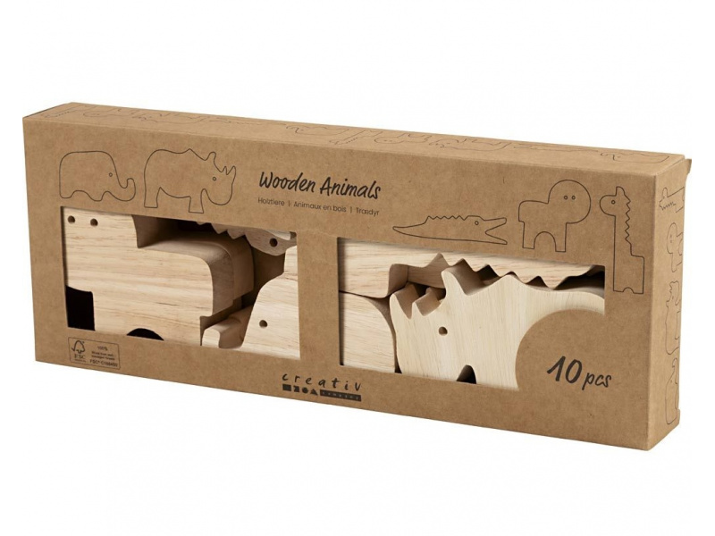 Originální sada dřevěných safari zvířátek pro dozdobení a hraní. Roztomilé figurky ze masivního dřeva si děti mohou vyzdobit podle vlastní fantazie – barvami, fixami nebo kreativními hmotami. Zvířátka jsou dost pevná na hraní a zároveň vypadají skvěle jako dekorace v dětském pokoji. Krabička obsahuje: • 10 dřevěných figurek safari zvířat (2× slon, 2× nosorožec, 2× krokodýl, 2× lev, 2× žirafa) • Pevné masivní dřevo – ideální na malování i kreativní zdobení • Figurky vhodné na hraní i jako dekorace Zábava a rozvoj dovedností: • Děti rozvíjí kreativitu a jemnou motoriku při vybarvování a zdobení • Figurky se dají upravit mnoha způsoby – každý kus může být originál Tipy na tvoření (výtvarné potřeby pro zdobení se prodávají samostatně): • namalovat hobby barvami nebo dozdobit kreativními fixami • přidat strukturu a lesk pomocí Foam Clay® nebo třpytivé hmoty • vyrobit hřívu či srst z natrhaného papíru nebo příze Rozměry zvířátek: výška 3-14,5 cm, tloušťka 2 cm Výtvarné potřeby pro zdobení zvířátek nejsou součástí balení. Vhodné pro děti od 3 let.