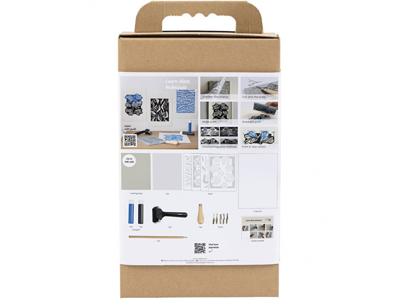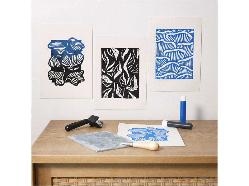Objevte kouzlo ručního tisku a vytvořte si vlastní umělecká díla metodou linorytu! Tato kreativní sada vznikla ve spolupráci s designérkou Kristou Tolstrup a obsahuje vše potřebné k výrobě dvou výrazných grafických tisků v modročerných odstínech. Kreativní tisk krok za krokem: • Naučíte se, jak přenést motiv na tiskovou matrici, vyřezat ho pomocí speciálních nožů a poté přenést na papír pomocí klasické tiskařské techniky • Skenováním QR kódu na obalu získáte přístup k instruktážním videím, která vás provedou celým procesem od začátku do konce • Výsledné tisky se skvěle hodí jako součást galerie na zdi nebo samostatná umělecká díla Technika pro každého: • Skvělý úvod do linorytu a blokového tisku • Jakmile zvládnete základy, můžete dále experimentovat s vlastními motivy, barvami i kompozicí Obsah balení: Tisková matrice Váleček na tisk Sada nožů pro linoryt Tiskařský inkoust Olejové pastely Tužka Pevná fólie pro přenos motivu Návod a online videa