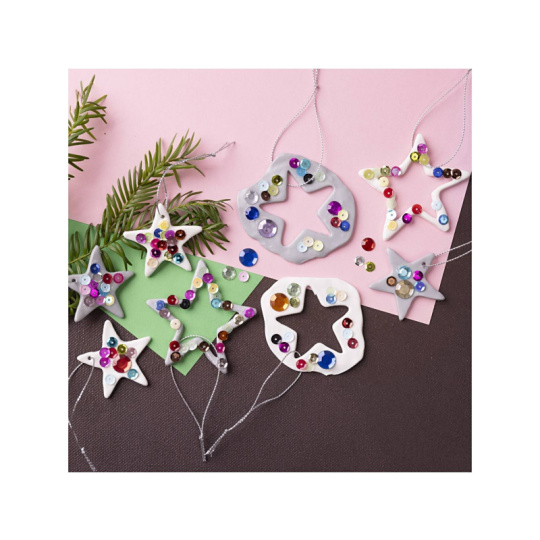 Kreativní sada, která dětem i dospělým umožní vytvořit si vlastní vánoční hvězdy z jemné modelovací hmoty, třpytek a flitrů. Jednoduché, ale zábavné tvoření, které vnese do Vánoc lesk, barvy a radost z vlastnoručně vyrobené dekorace. Vánoční hvězdy, které zazáří na každém stromku: • Sada obsahuje vše potřebné k výrobě osmi originálních hvězd • Stačí vyválet hmotu, vykrájet tvary, nechat je vytvrdnout a poté ozdobit třpytkami, kamínky a flitry • Ideální pro společné tvoření rodičů s dětmi i jako samostatná aktivita pro malé tvůrce Tvoření, které rozvíjí: • Podporuje fantazii, tvořivost a cit pro barvy i detaily • Rozvíjí jemnou motoriku a schopnost soustředění • Děti se učí vyjádřit vlastní styl a estetické cítění Obsah balení: Modelovací hmota, vykrajovátko na hvězdy, třpytkové lepidlo, flitry, kamínky, stříbrná nit a modelovací nástroj Vhodné pro děti od 5 let.