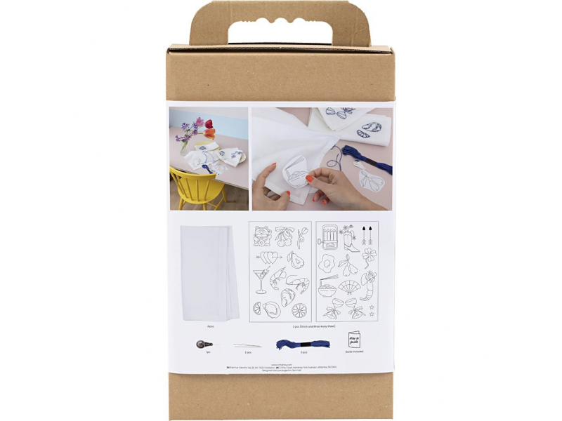 Originální kreativní sada pro vyšívání textilních ubrousků. Tato sada vám umožní vyšít si vlastní látkové ubrousky a vytvořit osobité prostírání s elegantním detailem. V balení najdete vše potřebné pro čtyři ubrousky včetně návodu. Práce je jednodušší, než se zdá: vyšívací samolepky umístíte na ubrousek, vyšijete motiv podle šablony a po dokončení se šablony ve vodě rozpustí. Výsledkem jsou čtyři jedinečné ubrousky, které dodají stolování osobní styl a udělají dojem na hosty. Zábava a rozvoj dovedností: • Jednoduchý projekt vhodný i pro začátečníky • Umožní vytvořit vlastní styl – motivy umístíte tam, kde chcete, a vyberete si barevné ladění • Skvělé pro sezónní dekorace, slavnostní příležitosti i „každodenní luxus“ • Hotové ubrousky jsou krásným dárkem nebo stylovým vylepšením domácnosti Obsah balení: • Textilní ubrousky (4 ks) • Vyšívací samolepky (rozpustné šablony) • Vyšívací příze • Vyšívací jehla • Navlékač jehly • Podrobný návod s postupem krok za krokem