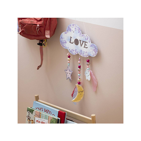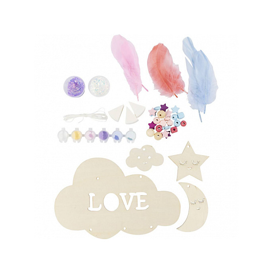 Originální kreativní sada pro výrobu závěsné dekorace s motivem noční oblohy. Zábavná sada dětem umožní společně s rodiči vytvořit originální dekoraci do dětského pokoje: dřevěnou dekoraci si nabarví, dozdobí třpytivou hmotou a doplní korálky a peříčky pro lehký, snový efekt. Výsledkem je krásná dekorace, kterou můžete zavěsit do okna, ze stropu nebo nad postel. Zábava a rozvoj dovedností: • Jednoduchý projekt vhodný pro společné tvoření dítě–rodič • Rozvíjí kreativitu, cit pro barvy a trpělivost při dokončování detailů • Navlékání korálků podporuje jemnou motoriku a soustředění • Hotová dekorace je osobní dekorace, která zútulní dětský pokoj • Skvělé jako víkendová aktivita nebo klidné tvoření během prázdnin Obsah balení: • Dřevěný základ dekorace • Barvy pro vybarvení dílků • Houbičky pro snadné nanášení barvy • Třpytivá modelovací hmota pro lesklé detaily • Šňůrky na zavěšení • Navlékací jehla • Dřevěné korálky • Peříčka • Podrobný návod s postupem krok za krokem Vhodné pro děti od 7 let.