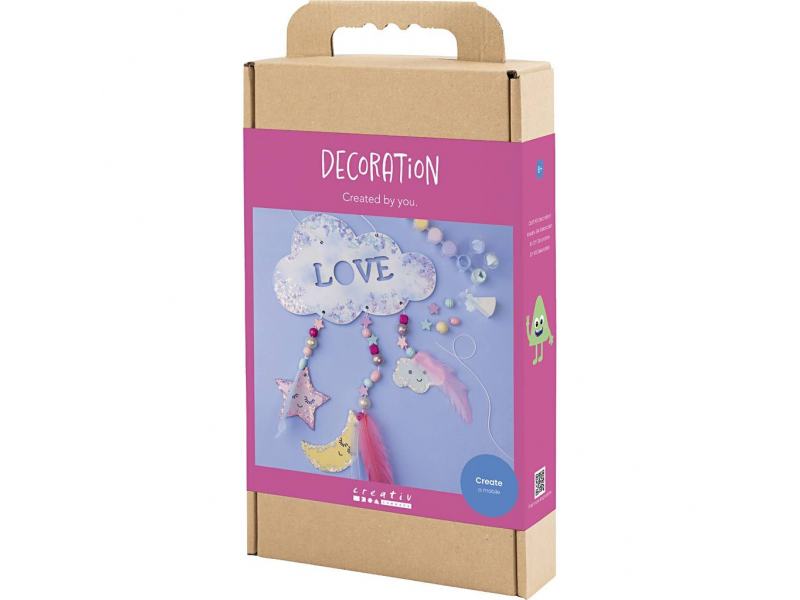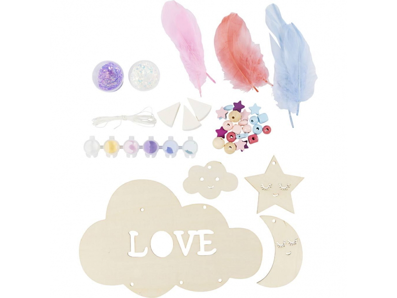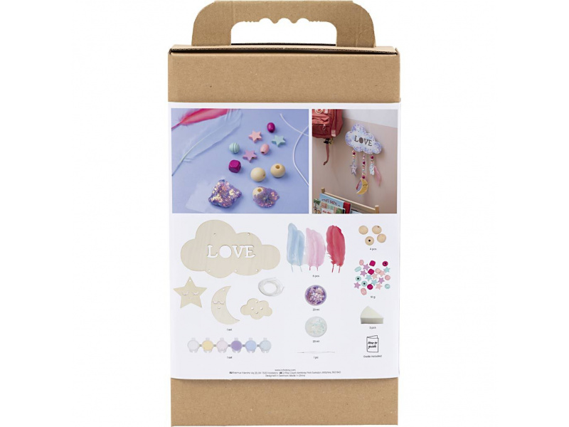 Originální kreativní sada pro výrobu závěsné dekorace s motivem noční oblohy. Zábavná sada dětem umožní společně s rodiči vytvořit originální dekoraci do dětského pokoje: dřevěnou dekoraci si nabarví, dozdobí třpytivou hmotou a doplní korálky a peříčky pro lehký, snový efekt. Výsledkem je krásná dekorace, kterou můžete zavěsit do okna, ze stropu nebo nad postel. Zábava a rozvoj dovedností: • Jednoduchý projekt vhodný pro společné tvoření dítě–rodič • Rozvíjí kreativitu, cit pro barvy a trpělivost při dokončování detailů • Navlékání korálků podporuje jemnou motoriku a soustředění • Hotová dekorace je osobní dekorace, která zútulní dětský pokoj • Skvělé jako víkendová aktivita nebo klidné tvoření během prázdnin Obsah balení: • Dřevěný základ dekorace • Barvy pro vybarvení dílků • Houbičky pro snadné nanášení barvy • Třpytivá modelovací hmota pro lesklé detaily • Šňůrky na zavěšení • Navlékací jehla • Dřevěné korálky • Peříčka • Podrobný návod s postupem krok za krokem Vhodné pro děti od 7 let.