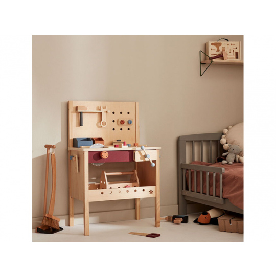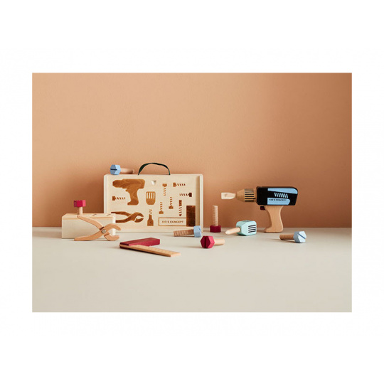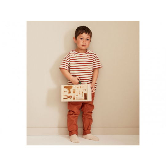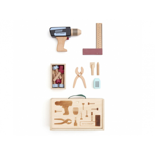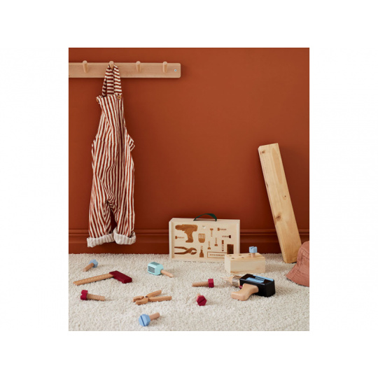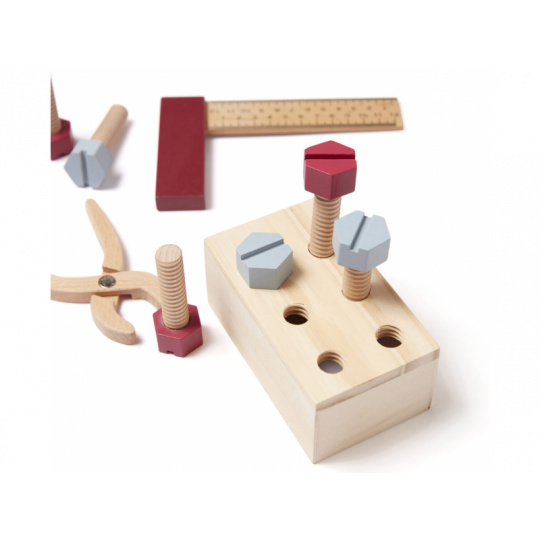Dřevěný kufřík s nářadím obsahuje všechno, co váš malý řemeslník potřebuje k opravám a montování. Sadu tvoří kufřík na nářadí, vrtačka / šroubovák, vrtáky, šest šroubů, dřevěná krabička se závity, kleště, ruční šroubovák a úhelník. Rozměry kufříku: 25 x 14 x 7,5 cm Vhodné pro děti od 3 let.
