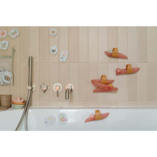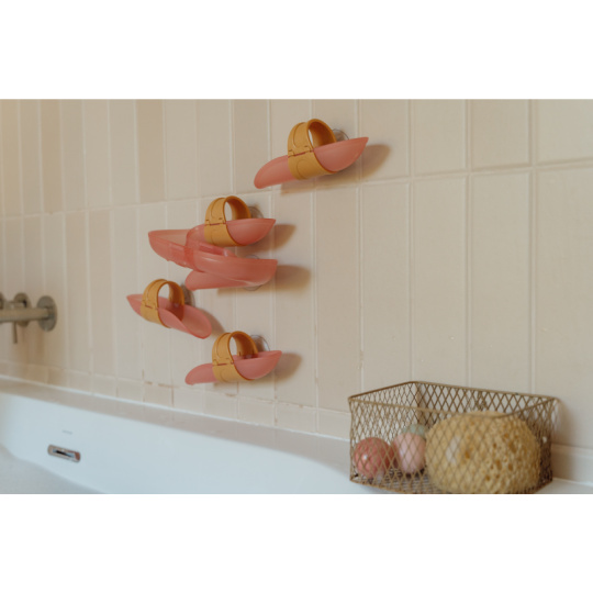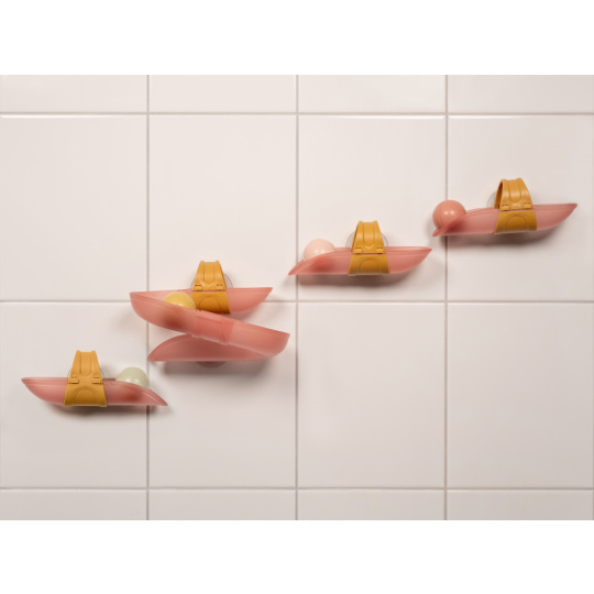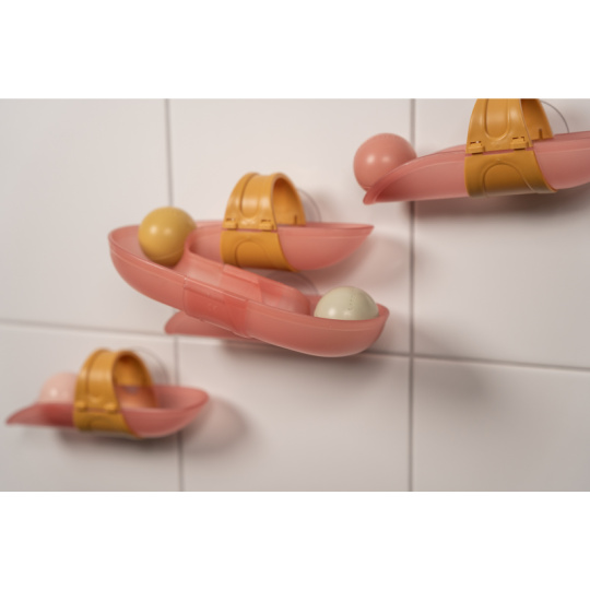 Koupání bude ještě zábavnější s touto speciální kuličkovou dráhou do vany. Dráhu snadno připevníte na vanu či dlaždičky s pomocí přísavek, které umožňují i její snadné sundání po koupeli. Sledujte společně s vaším dítětem, jak se míčky kutálí dolů jeden za druhým, až na konci žbluňknou do vody. Hračka pomáhá rozvíjet koordinaci ruka - oko dítěte a učí jej zábavným způsobem konceptu příčiny a následku. Sada obsahuje 4 díly dráhy a 4 míčky. Materiál: PP / ABS Vhodné pro děti od 10 měsíců.