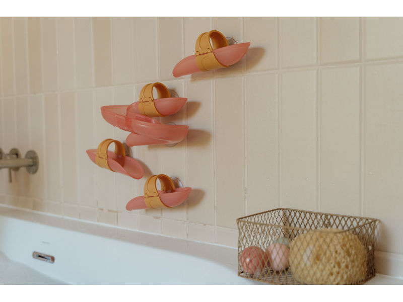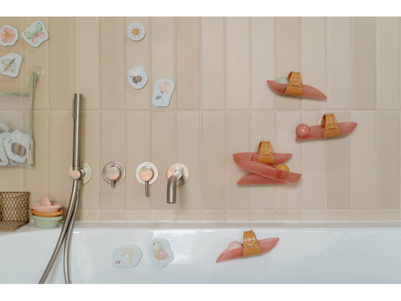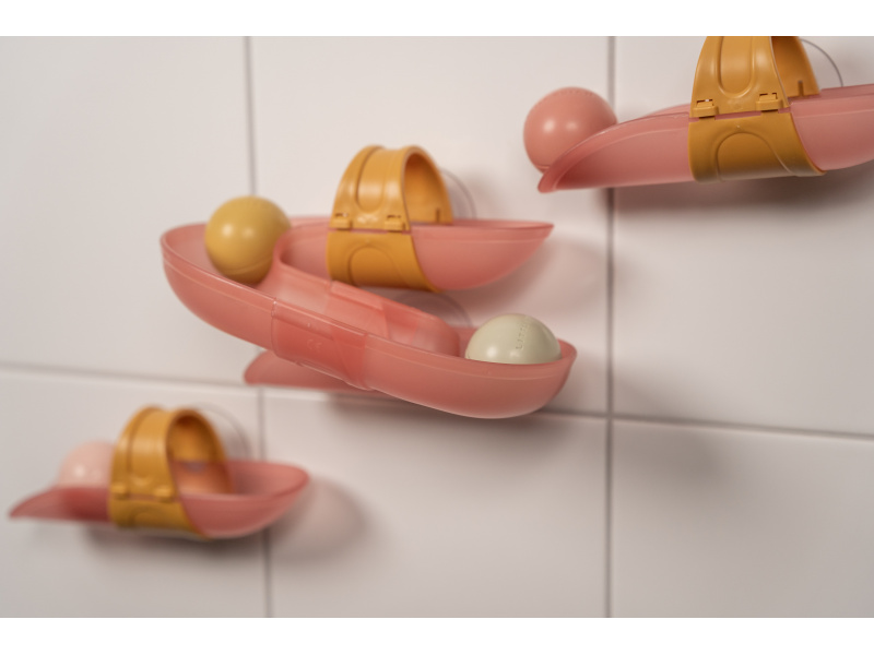 Koupání bude ještě zábavnější s touto speciální kuličkovou dráhou do vany. Dráhu snadno připevníte na vanu či dlaždičky s pomocí přísavek, které umožňují i její snadné sundání po koupeli. Sledujte společně s vaším dítětem, jak se míčky kutálí dolů jeden za druhým, až na konci žbluňknou do vody. Hračka pomáhá rozvíjet koordinaci ruka - oko dítěte a učí jej zábavným způsobem konceptu příčiny a následku. Sada obsahuje 4 díly dráhy a 4 míčky. Materiál: PP / ABS Vhodné pro děti od 10 měsíců.