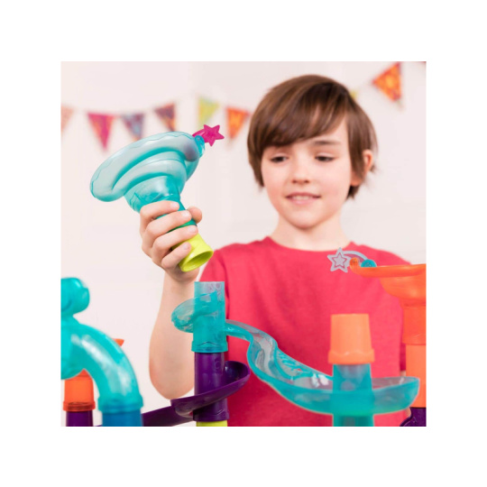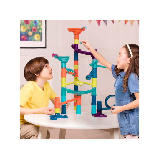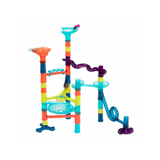Maxi kuličková dráha nabízí nekonečnou variabilitu při stavění dráhy z barevných, odolných dílů. Postavte spolu s vašimi dětmi dráhu obsahující vysoké věže, kroutící se mosty i různorodé pohyblivé části a pak si užijte sledování pohybu kuliček celým bludištěm. Hračka pomáhá rozvíjet kreativní myšlení i motorické dovednosti dítěte. Zároveň učí dítě chápat princip příčiny a následku. Sada obsahuje 30 dílů dráhy a 8 kuliček. Vhodné pro děti od 3 let.