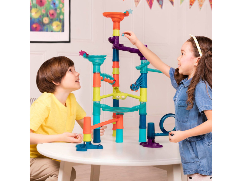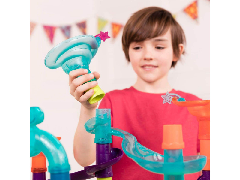 Maxi kuličková dráha nabízí nekonečnou variabilitu při stavění dráhy z barevných, odolných dílů. Postavte spolu s vašimi dětmi dráhu obsahující vysoké věže, kroutící se mosty i různorodé pohyblivé části a pak si užijte sledování pohybu kuliček celým bludištěm. Hračka pomáhá rozvíjet kreativní myšlení i motorické dovednosti dítěte. Zároveň učí dítě chápat princip příčiny a následku. Sada obsahuje 30 dílů dráhy a 8 kuliček. Vhodné pro děti od 3 let.