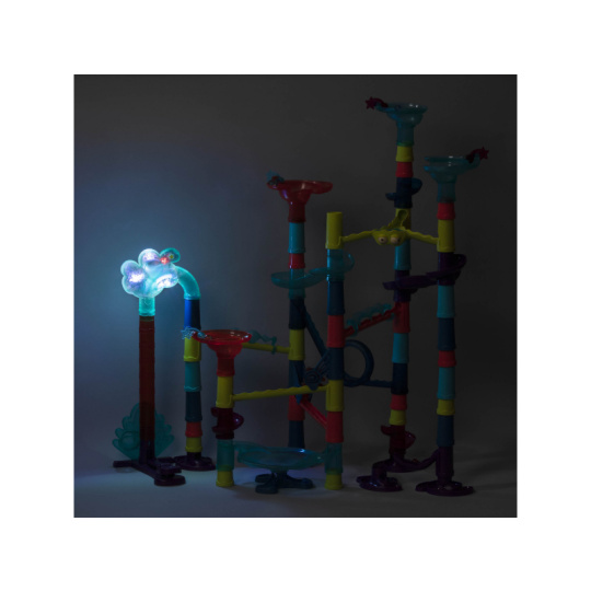Maxi kuličková dráha nabízí nekonečnou variabilitu při stavění dráhy z barevných, odolných dílů. Postavte spolu s vašimi dětmi dráhu obsahující vysoké věže, kroutící se mosty i různorodé pohyblivé části a pak si užijte sledování pohybu kuliček celým bludištěm. Pro ještě větší efekt dráha obsahuje i díl s barevnými světýlky. Hračka pomáhá rozvíjet kreativní myšlení i motorické dovednosti dítěte. Zároveň učí dítě chápat princip příčiny a následku. Sada obsahuje 51 dílů dráhy a 11 kuliček. Vyměnitelné baterie 3 x AG13 jsou součástí balení. Vhodné pro děti od 4 let.