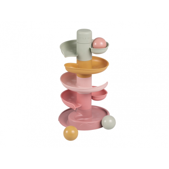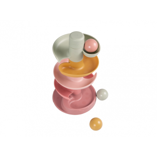 Sledujte s vaším dítětem, jak se míčky kutálí kolem dokola jeden za druhým! Dráhu v jemných pastelových barvách snadno sestavíte z pěti dílů a zábava může začít. Hračka pomáhá rozvíjet koordinaci ruka - oko dítěte a učí jej zábavným způsobem konceptu příčiny a následku. Rozměry: 30 x 18 x 18 cm Vhodné pro děti od 10 měsíců.