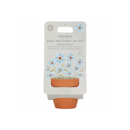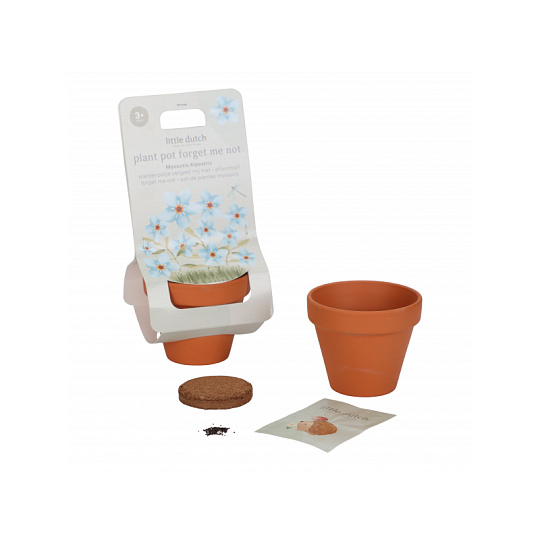 Květináč se semínky pomněnky je prvním krokem k vlastní zahrádce pro vaši malou zahradnici či zahradníka! Terakotový květináč obsahuje substrátovou tabletu a semínka pomněnky, která rychle roste a nádherně kvete. Použití je snadné a radost z pozorování růstu květiny je zaručena! Návod k použití: Umístěte tabletu Cocopress® na misku a přidejte 30 ml vlažné vody. Přibližně po 5 minutách bude tableta plně nasycená a vytvoří přibližně 60 ml zeminy pro použití v květináči. Semínka rozprostřete do květináče a zakryjte je tenkou vrstvou zeminy. Květináč postavte na misku na světlé místo, například na parapet. Nenechte půdu v květináči vyschnout; udržujte semena mírně vlhká. Mladé rostlinky lze od poloviny května přesadit ven do truhlíku nebo na zahradu. Květináč je součástí designové kolekce hraček a doplňků Little Dutch Forest Friends, inspirované životem v lese. Vhodné pro děti od 3 let.