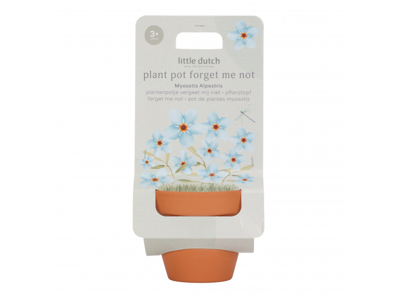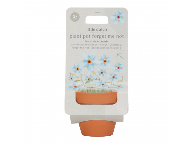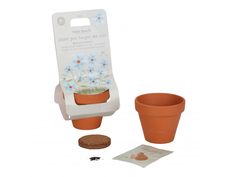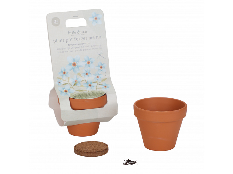 Květináč se semínky pomněnky je prvním krokem k vlastní zahrádce pro vaši malou zahradnici či zahradníka! Terakotový květináč obsahuje substrátovou tabletu a semínka pomněnky, která rychle roste a nádherně kvete. Použití je snadné a radost z pozorování růstu květiny je zaručena! Návod k použití: Umístěte tabletu Cocopress® na misku a přidejte 30 ml vlažné vody. Přibližně po 5 minutách bude tableta plně nasycená a vytvoří přibližně 60 ml zeminy pro použití v květináči. Semínka rozprostřete do květináče a zakryjte je tenkou vrstvou zeminy. Květináč postavte na misku na světlé místo, například na parapet. Nenechte půdu v květináči vyschnout; udržujte semena mírně vlhká. Mladé rostlinky lze od poloviny května přesadit ven do truhlíku nebo na zahradu. Květináč je součástí designové kolekce hraček a doplňků Little Dutch Forest Friends, inspirované životem v lese. Vhodné pro děti od 3 let.