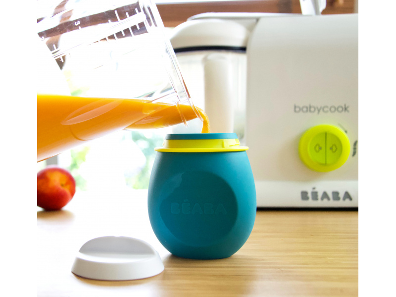 Měkká silikonová lahvička s víčkem je ideální pro uchování doma připraveného ovocného či zeleninového pyré, husté štávy, jogurtu apod. v lednici i mrazáku. Víčko zaručuje bezpečné uzavření lahvičky. Široké hrdlo umožňuje snadné plnění i údržbu, díky stabilní základně lahvičku můžete postavit na stůl. Dítě můžete z lahvičky krmit lžičkou nebo ji můžete používat v kombinaci se samostatně prodávanou Lahvičkou Beaba BabySqueez 2v1, jejíž součástí jsou 2 pítka (měkké pro děti od 6 měsíců, pevné pro děti od 12 měsíců). Pítko lahvičky BabySqueez je možné použít i pro lahvičku Squeez'Portion. Lahvičku využijete doma i na cestách s miminkem i batoletem. Silikonový měkký materiál je bezpečný a příjemný při používání. Je odolný vysokým i nízkým teplotám a není náchylný k vytváření skvrn od barevných potravin. Neobsahuje bisfenol. Lahvičku je možno mýt v myčce nádobí.