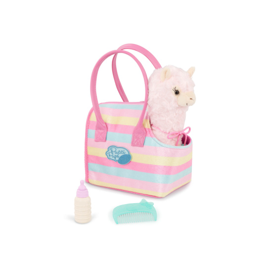 Něžná plyšová lama v kabelce s krásným potiskem je vždy připravena na mazlení i na procházku. Miluje vyčesávání své hebké srsti hřebínkem a díky kabelce si ji vaše dítě může vzít kamkoli. Kabelka má otvor, aby lama při přenášení viděla na svět. Obsah balení: kabelka, plyšová lama, hřeben, lahvička Rozměry: cca 25 x 13 x 24 cm Vhodné pro děti od 3 let.