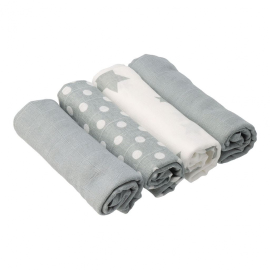 Látkové bavlněné pleny New Baby Softy s potiskem 70 x 70 cm 4 ks šedo-bílé