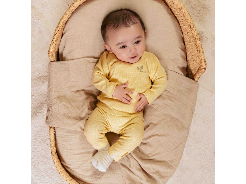 Legíny z měkké organické bavlny s jemným vzorem mají pružný pás pro pohodlí dítěte. Složení: 100% organická bavlna