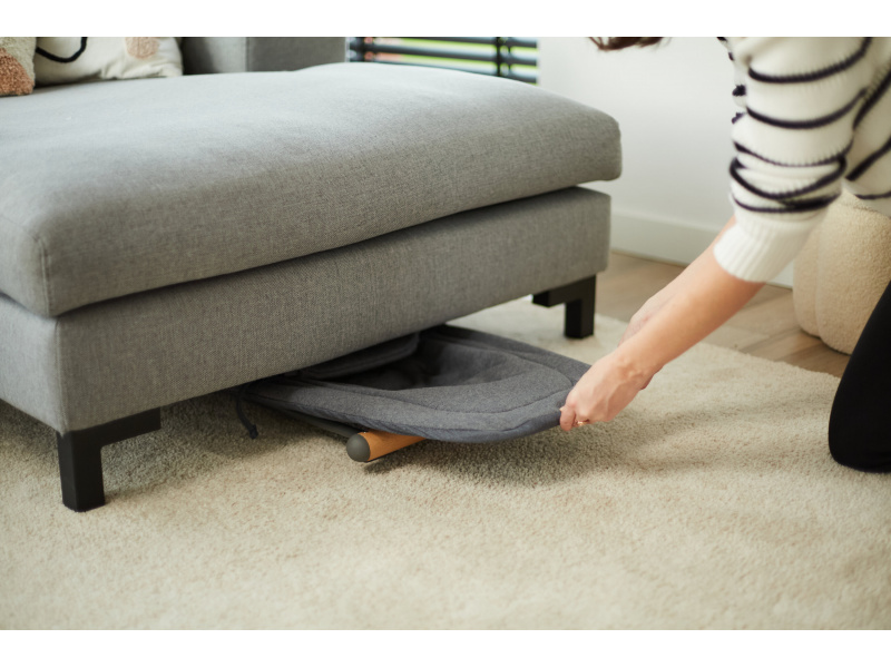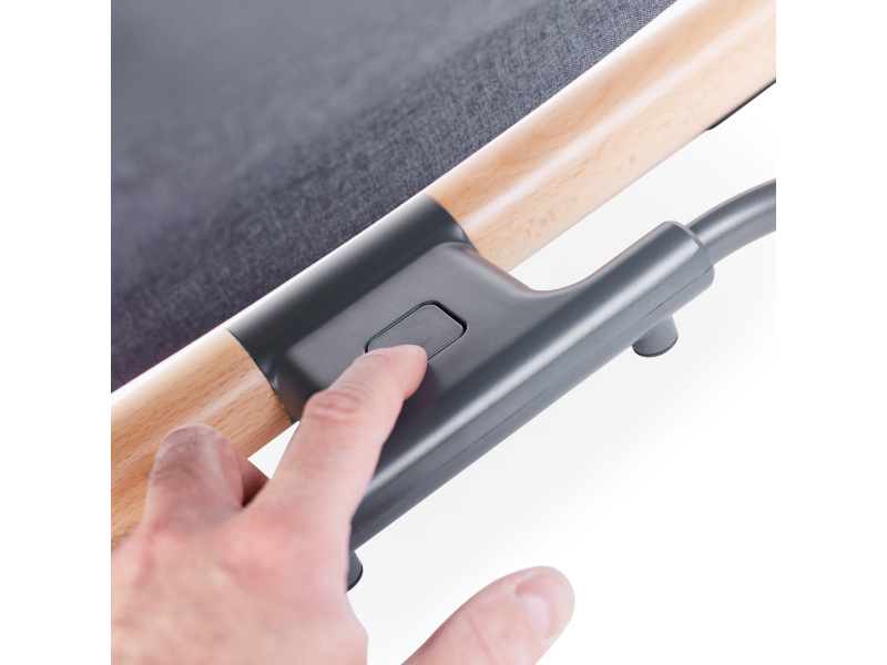 Skládací lehátko v minimalistickém provedení se při pohybu dítěte jemně houpe. Lehátko se třemi polohami náklonu vyniká svojí jednoduchostí i pohodlím pro dítě, kterému poskytuje optimální oporu krku i zad. Měkké polstrování 3-bodového bezpečnostního pásu zajišťuje bezpečné i pohodlné připoutání dítěte. Pro starší děti je možné bezpečnostní pás sejmout a lehátko se tak přemění v sedátko pro batolata. Lehátko je po složení vysoké pouze 5 cm a když jej nepoužíváte, můžete je např. zasunout pod pohovku nebo opřít o zeď. Součástí balení je přepravní taška pro snadné přenášení. Rozměry: 64 x 47 x 65,5 cm Výška po složení: 5 cm Materiál: bukové dřevo, ocel, textilní potah 40% polyester, 60% bavlna Potah je možno prát v pračce. Vhodné pro děti od narození do 15 kg.