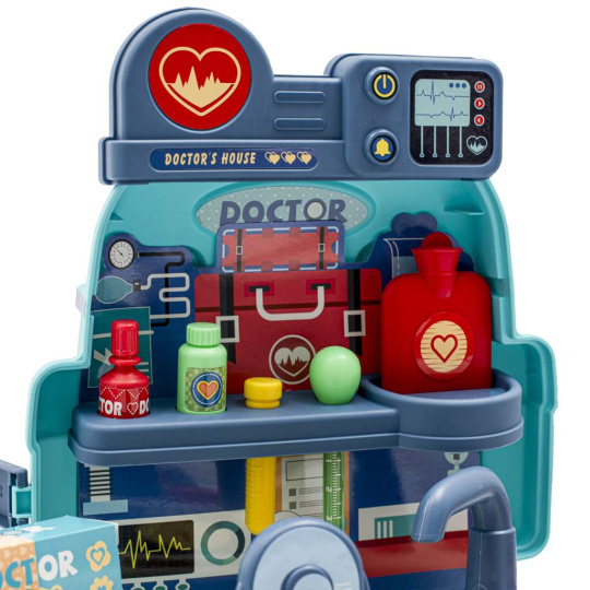 Lékařský set v batůžků obsahuje spoustu lékařského náčiní, které jistě zajistí skvělou hru pro vaše malé lékaře.