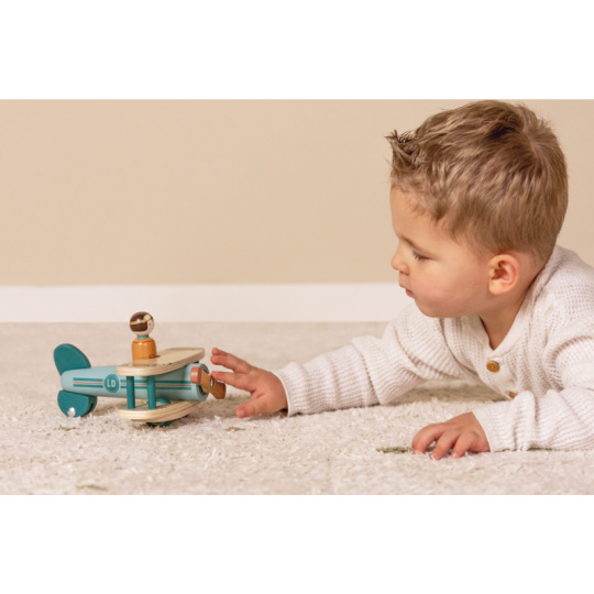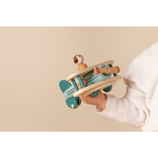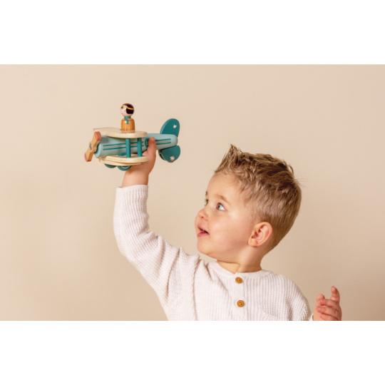 Jste připraveni vzlétnout? Stačí nastartovat motor, roztočit vrtuli a vydat se za dobrodužstvím v oblacích! Letadlo s vyjímatelným pilotem a otáčecí vrtulí i kolečky poskytne vašemu dítěti hodiny kreativní zábavy. Figurka pilota je kompatibilní s domečkem pro panenky a dalšími dřevěnými hračkami Little Dutch. Vyrobeno z kvalitního dřeva certifikovaného FSC. Rozměry: 16,5 x 18 x 11,5 cm Vhodné pro děti od 18 měsíců.