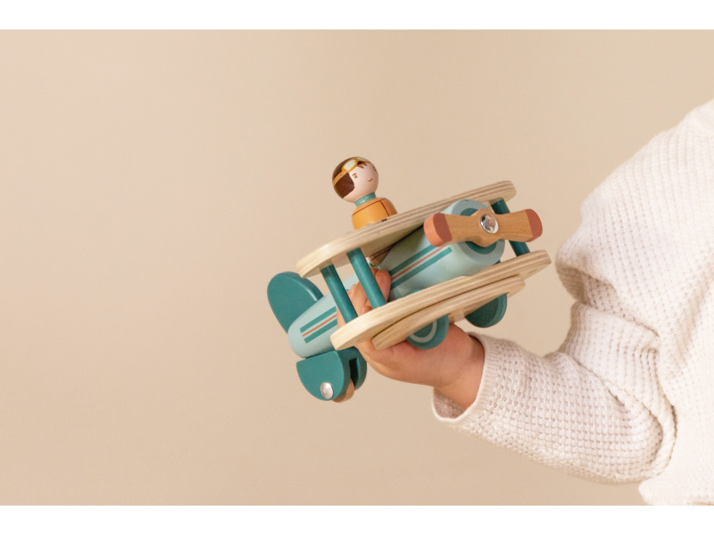 Jste připraveni vzlétnout? Stačí nastartovat motor, roztočit vrtuli a vydat se za dobrodužstvím v oblacích! Letadlo s vyjímatelným pilotem a otáčecí vrtulí i kolečky poskytne vašemu dítěti hodiny kreativní zábavy. Figurka pilota je kompatibilní s domečkem pro panenky a dalšími dřevěnými hračkami Little Dutch. Vyrobeno z kvalitního dřeva certifikovaného FSC. Rozměry: 16,5 x 18 x 11,5 cm Vhodné pro děti od 18 měsíců.