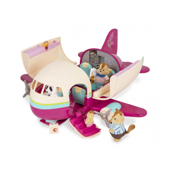 Luxusně vybavené letadlo přepraví obyvatele Honeysuckle Hollow na dovolenou s maximálním komfortem! Polštářky a přikrývky zajistí pohodlné spaní během letu, bohaté občerstvení zpříjemní pasažérům každý let. Uniforma pilota je součástí balení, stačí tedy vybrat některou ze samostatně prodávaných postaviček zvířátek Li'l Woodzeez a do uniformy ji převléct! 35-dílná sada obsahuje letadlo, uniformu pilota, 2 láhve pomerančového džusu, 2 láhve na vodu, 2 konvice na kávu, 1 vozík, 4 podnosy na jídlo, 4 šálky, 4 vidličky, 2 noviny, 4 kufry, 4 polštáře a 4 přikrývky. Postavičky zvířátek se prodávají samostatně. Samostatně prodávané postavičky zvířátek Li'l Woodzeez jsou vyrobené z měkkého příjemného materiálu a mají pohyblivé ruce, nohy i hlavy pro zábavnou předstíranou hru. Součástí samostatně prodávané nabídky doplňků Li'l Woodzeez jsou domečky, obchody i dopravní prostředky. Všechny postavičky a doplňky Li'l Woodzeez jsou navzájem kompatabilní a umožní vám vytvořit originální městečko pro nekonečnou hru rozvíjející fantazii a kreativitu vašeho dítěte. Rozměry: 41 x 22 x 23 cm Vhodné pro děti od 3 let.