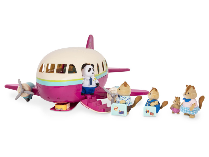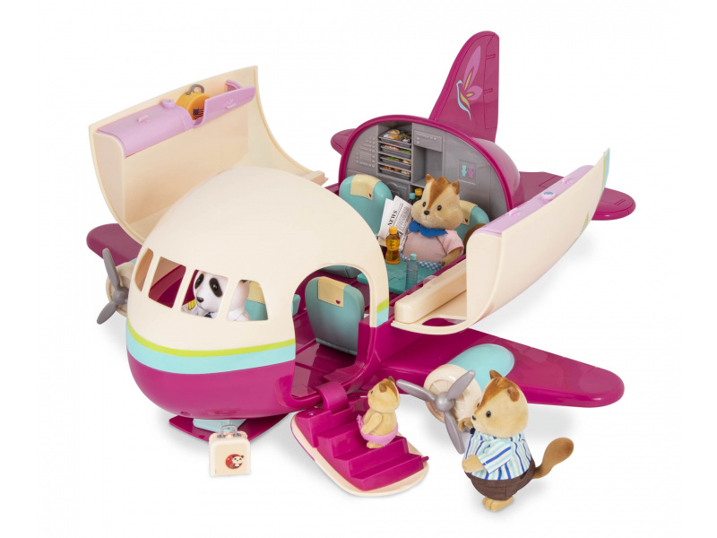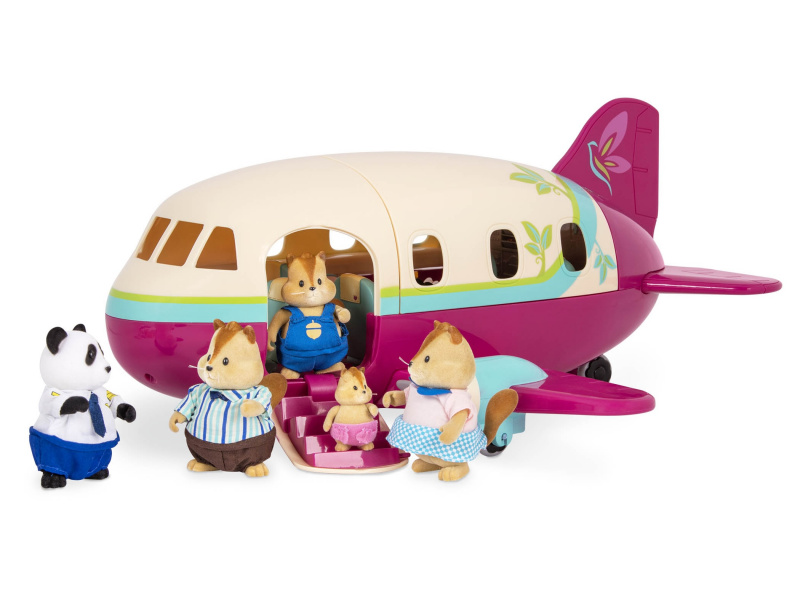 Luxusně vybavené letadlo přepraví obyvatele Honeysuckle Hollow na dovolenou s maximálním komfortem! Polštářky a přikrývky zajistí pohodlné spaní během letu, bohaté občerstvení zpříjemní pasažérům každý let. Uniforma pilota je součástí balení, stačí tedy vybrat některou ze samostatně prodávaných postaviček zvířátek Li'l Woodzeez a do uniformy ji převléct! 35-dílná sada obsahuje letadlo, uniformu pilota, 2 láhve pomerančového džusu, 2 láhve na vodu, 2 konvice na kávu, 1 vozík, 4 podnosy na jídlo, 4 šálky, 4 vidličky, 2 noviny, 4 kufry, 4 polštáře a 4 přikrývky. Postavičky zvířátek se prodávají samostatně. Samostatně prodávané postavičky zvířátek Li'l Woodzeez jsou vyrobené z měkkého příjemného materiálu a mají pohyblivé ruce, nohy i hlavy pro zábavnou předstíranou hru. Součástí samostatně prodávané nabídky doplňků Li'l Woodzeez jsou domečky, obchody i dopravní prostředky. Všechny postavičky a doplňky Li'l Woodzeez jsou navzájem kompatabilní a umožní vám vytvořit originální městečko pro nekonečnou hru rozvíjející fantazii a kreativitu vašeho dítěte. Rozměry: 41 x 22 x 23 cm Vhodné pro děti od 3 let.