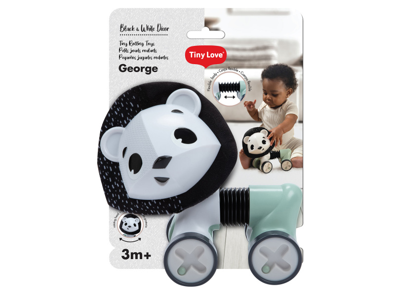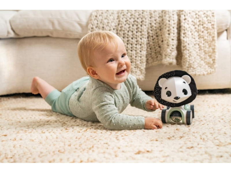 Roztomilá hračka v podobě lva s natahovacím harmonikovým tělem a otočnými kolečky zabaví dítě od prvních momentů na bříšku přes lezení a samostatné sezení až po první krůčky. Lev díky ohebnému tělu umí sedět i při jízdě zatáčet. Jeho hlavou s šusticí hřívou je možné otáčet. Rozměry: 12,5 x 17 x 14,5 cm Vhodné pro děti od 3 měsíců.