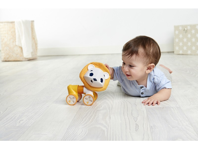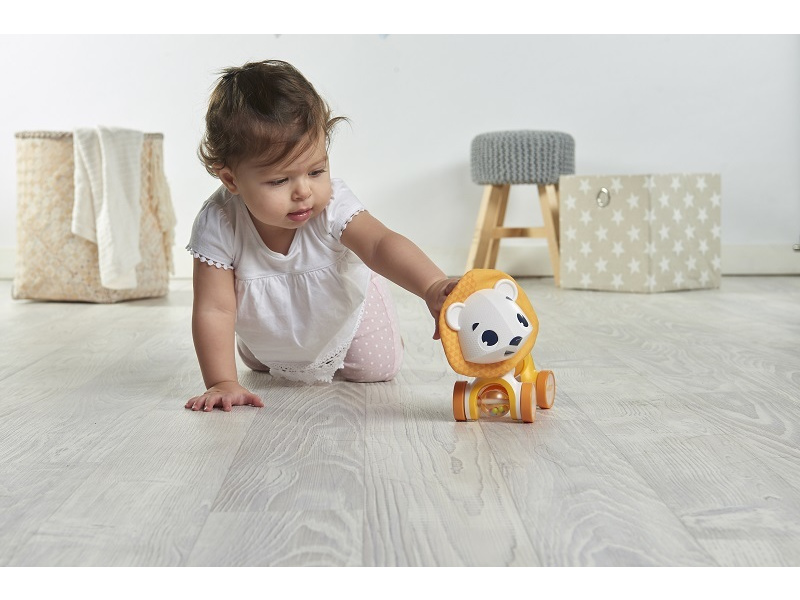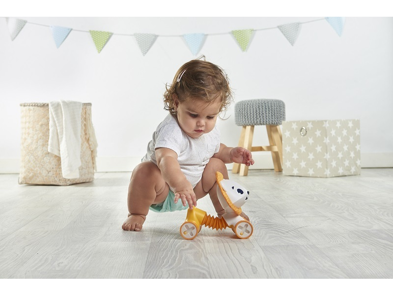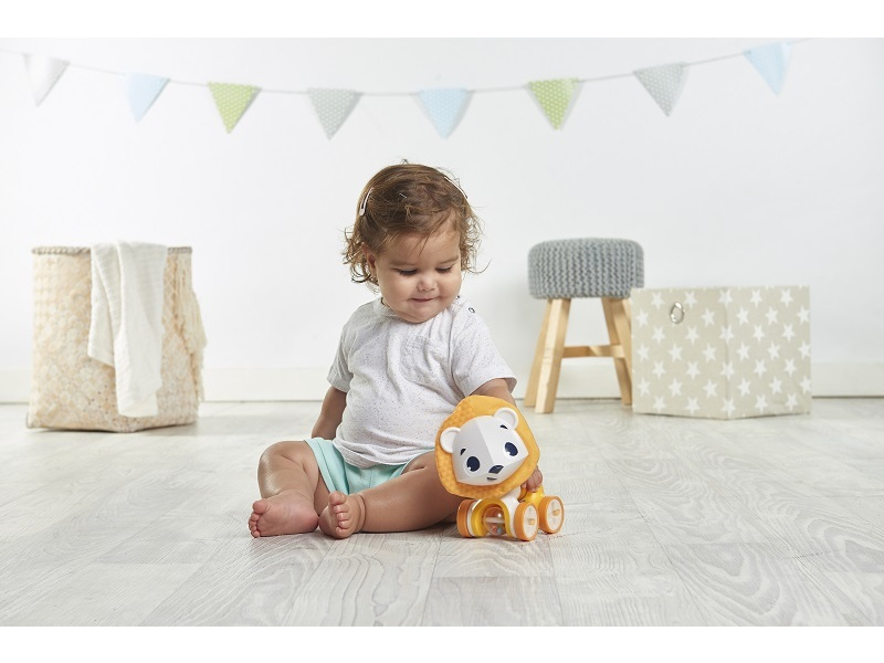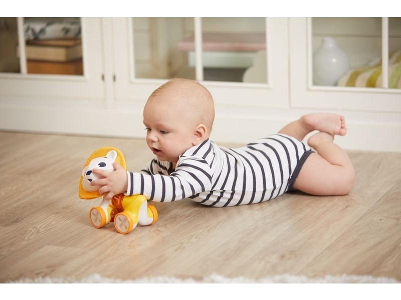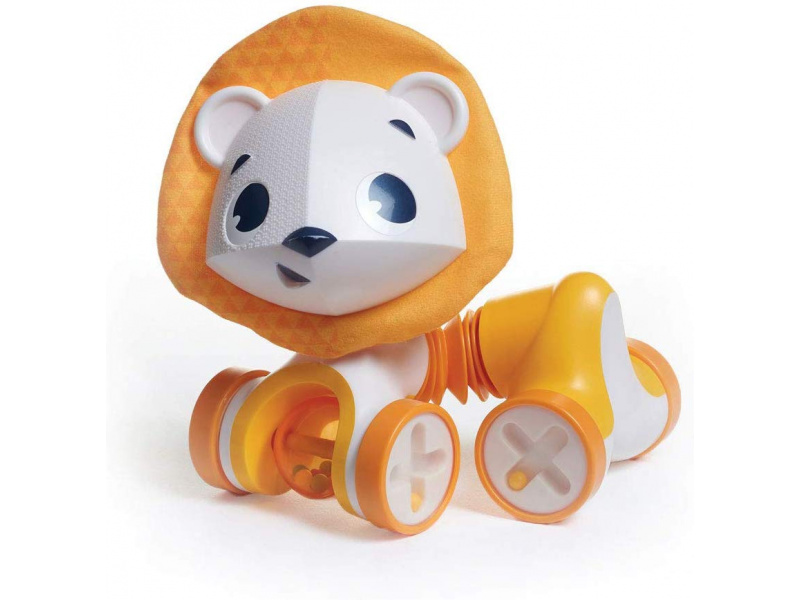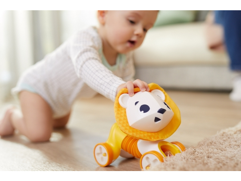 Roztomilá hračka v podobě lva s natahovacím harmonikovým tělem a otočnými kolečky zabaví dítě od prvních momentů na bříšku přes lezení a samostatné sezení až po první krůčky. Lev díky ohebnému tělu umí sedět i při jízdě zatáčet. Jeho hlavou s šusticí hřívou je možné otáčet. Rozměry: 12,5 x 17 x 14,5 cm Vhodné pro děti od 3 měsíců.