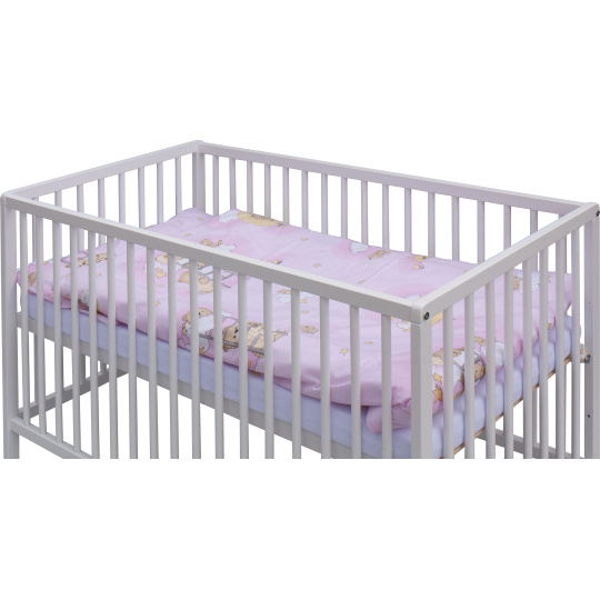 1 . Dětská dřevěná postýlka 120x60 cm - bílá, masiv, vyndavací příčky, 3 polohy roštu, nohy postýlky jsou předvrtané pro možné nasazení koleček
