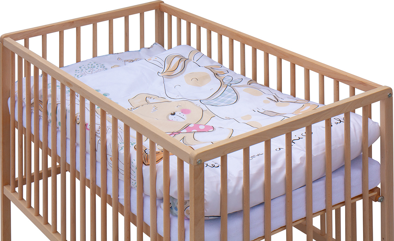 Levná postýlka s vyndavacími příčkami - přírodní ECO - 120x60 cm s výbavou Velcí kamarádi Barva soupravy: Tery