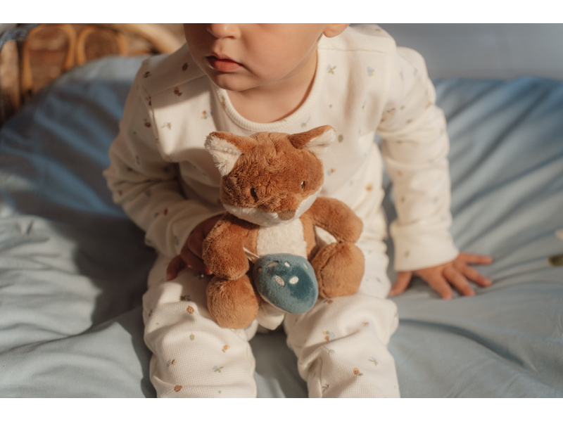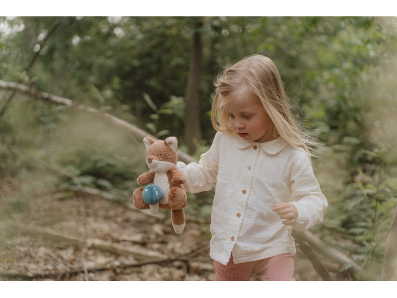 Jemná plyšová hračka v podobě veselé lišky s houbičkou je ideální jako mazlík do postýlky pro lepší usínání vašeho dítěte. Liška umí sedět a může se tak stát i krásnou dekorací v dětském pokojit. Hračka je součástí designové kolekce hraček a doplňků Little Dutch Forest Friends inspirované životem v lese. Rozměry: 20 x 15 x 10 cm Vhodné pro děti od narození.