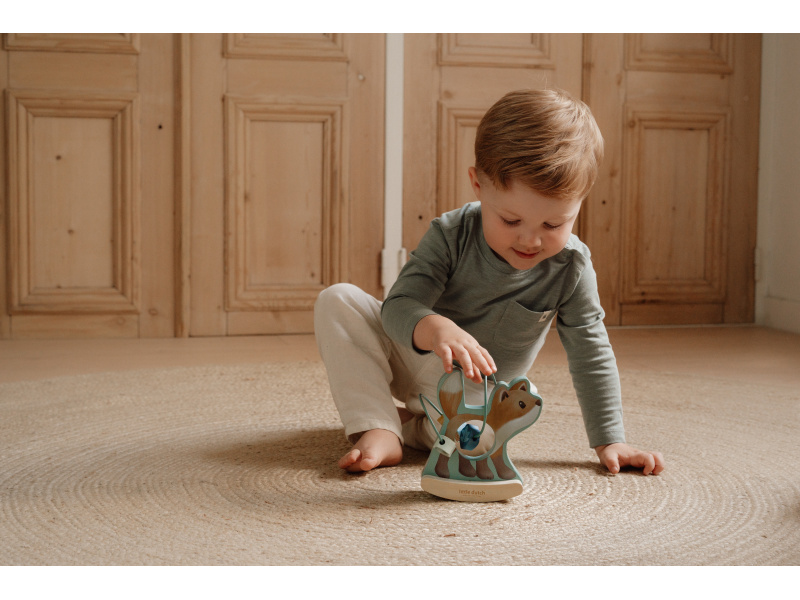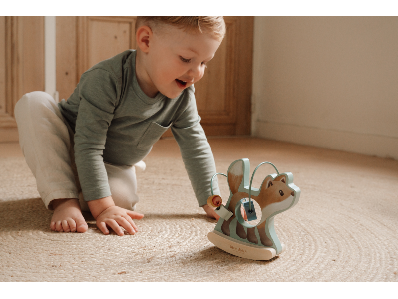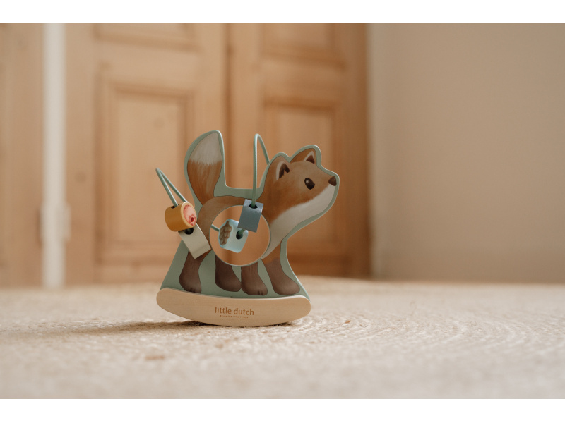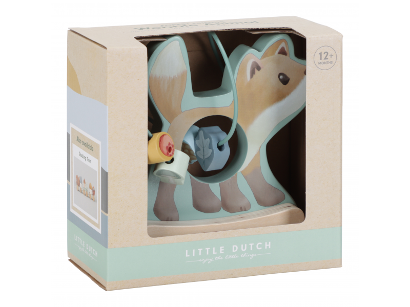 Dřevěná hračka v podobě něžné lišky se po postavení na podlahu či stůl jemně houpe a přitom se kolem ní na spirále pohybují posuvné dřevěné korálky s potiskem houbičky, šišky, lístku a brusinky. Hračka je ideální pro rozvoj koordinace ruka / oko dítěte slouží i jako krásná dekorace v dětském pokoji. Hračka je součástí designové kolekce hraček a doplňků Little Dutch Forest Friends inspirované životem v lese. Vyrobeno z dřeva certifikovaného FSC. Rozměry: 13,7 x 8,5 x 15,3 cm Vhodné pro děti od 12 měsíců.