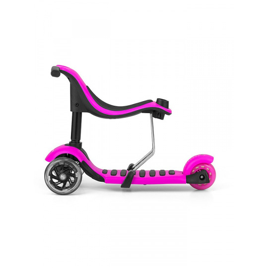 Super stylová dětská koloběžka Milly Mally Little Star. Není to jen koloběžka, je to také odrážedlo pro děti od druhých narozenin, které má sedadlo i vodíci tyč pro rodiče. Nosnost do 20 kg. Sedadlo i vodíci tyč lze jednoduše sundat a z odrážedla se rázem stane koloběžka s nosností do 50 kg. Je ideálním řešením pro aktivní děti, které jsou v neustálém pohybu. Little Star je vyrobena z kvalitních materiálů, ideální na procházky i pro skvělou zábavu. Kovová konstrukce zaručuje odolnost výrobku. Koloběžka má navíc brzdu a blatník na zadním kolečku. Řízení a kroucení pracuje na principu rovnováhy těla. Velkou výhodou koloběžky jsou 3 kola, které poskytnou stabilitu a bezpečnost. Děti potěší také, svítíci přední kola během jízdy. Little Star je 3v1, pohodlí a jednoduchost v moderní formě.