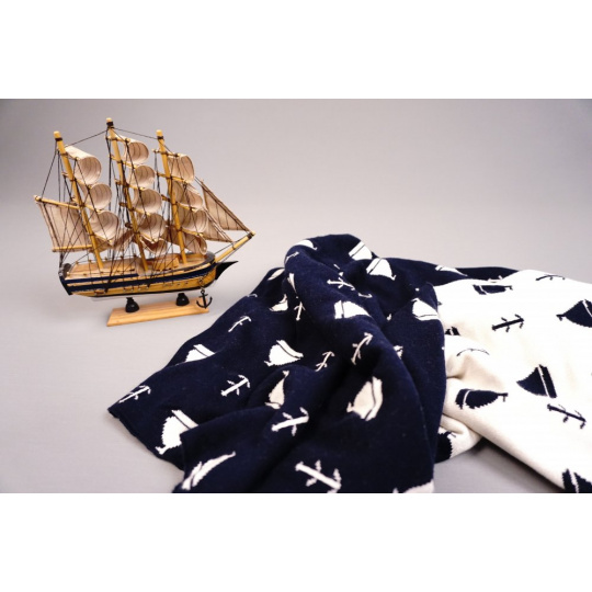 LittleUp Bavlněná dětská deka 100x80 cm LittleUp Dark Blue Anchors
