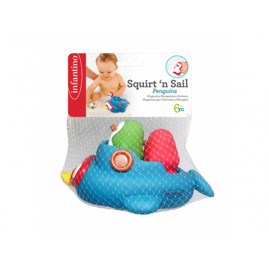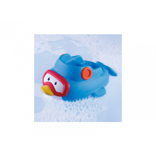 Lodička v podobě maxi tučňáka, který vozí dva malé stříkací tučňáky, je originální a zábavná hračka do koupele. Vymýšlejte spolu s dítětem během koupání příběhy o tom, co všechno tučňáci na svých výletech prožívají a užívejte si společně příjemné chvíle před spaním. Vhodné pro děti od 6 měsíců.