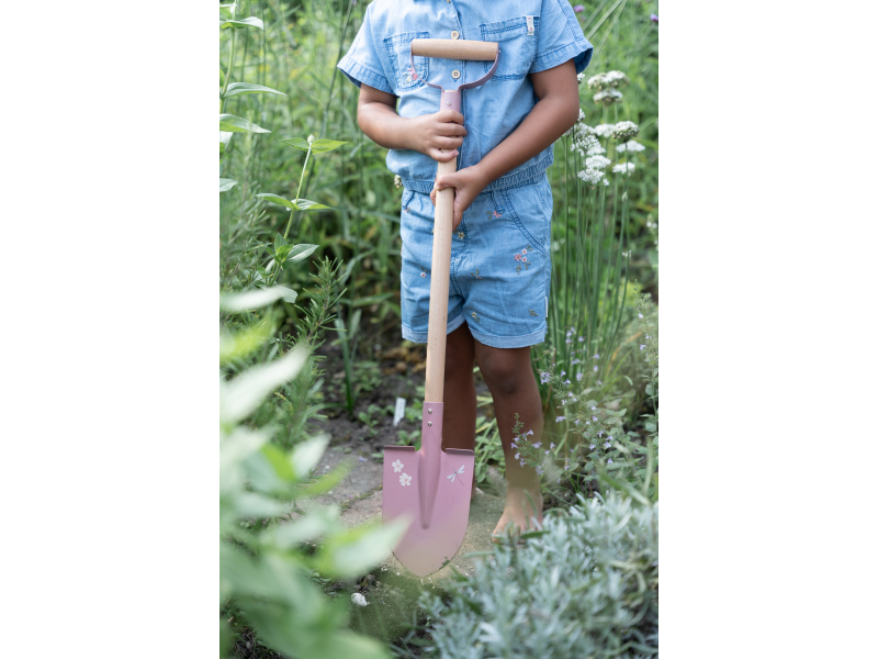 Naložit hlínu na kolečko i připravit záhonek pro sázení bude s touto lopatou hračka! Nepostradatelný nástroj pro malé zahradníky a zahradnice má pevnou dřevěnou rukojeť a kovovou čepel. Lopata s rukojetí v horní části pro snadný úchop se bude hodit pro práci na zahradě i hraní na pískovišti. Lopata s krásným potiskem je součástí designové kolekce hraček a doplňků Little Dutch Fairy Garden, inspirované životem na zahradě. Složení: dřevo, kov Rozměry: 69 x 12 x 4 cm Vhodné pro děti od 4 let.