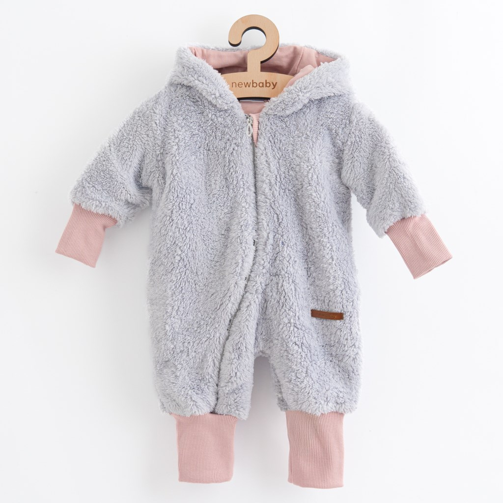 Luxusní dětský zimní overal New Baby Teddy bear šedo růžový