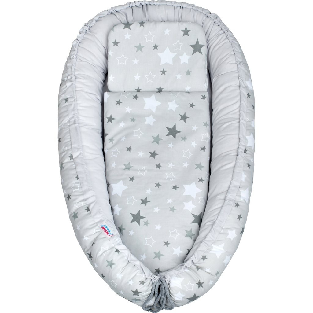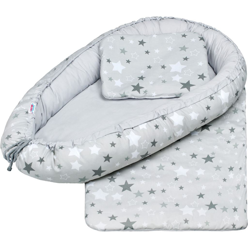 Luxusní hnízdečko s peřinkami pro miminko New Baby bílo-šedé hvězdičky