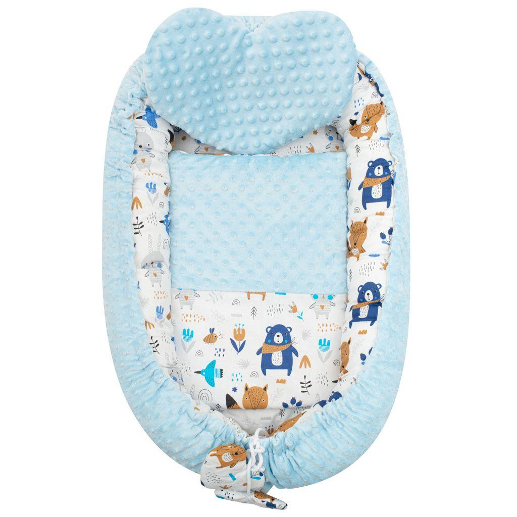 Luxusní hnízdečko s polštářkem a peřinkou New Baby z Minky modré