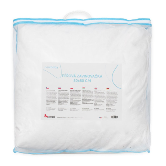 Luxusní péřová zavinovačka Dráček 80x80 cm cm české značky New Baby je synonymem komfortu ve spaní. Péřová zavinovačka poskytuje miminku měkkoučký pocit, teplo a pocit bezpečí jako v bříšku. Pomáhá tak miminku se adaptovat na nové podmínky. Díky vynikajícím vlastnostem peří zajišťuje zavinovačka miminku stabilní teplotu. Peří absorbuje vlhkost a odvádí ji od lidského těla během spánku. Speciální čištěné, testované peří. Naše peřinky obsahují 80 procent draného husího peří a 20 prachové peří výplně ( 0,4 kg),
