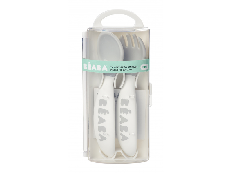 Plastová lžička a vidlička pro první samostatné krmení má ideální tvar pro dětská ústa. Tvar držadla usnadňuje dítěti držení lžičky i vidličky a je vhodný pro praváky i leváky. Praktické pouzdro umožňuje hygienické přenášení lžičky a vidličky např. v přebalovací tašce. Možno mýt v myčce. Neobsahuje BPA. Vhodné pro děti od 8 měsíců.