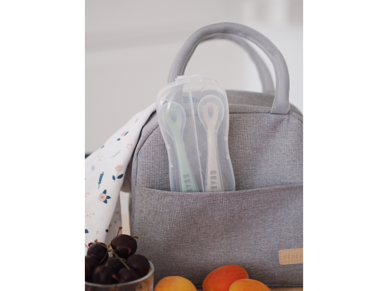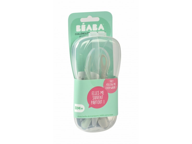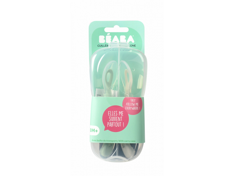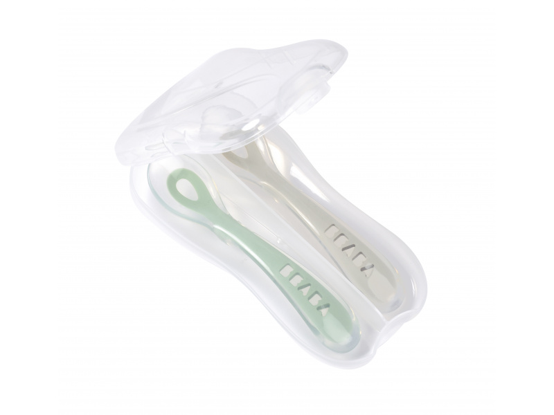 Silikonová lžička pro první samostatné krmení má ideální tvar pro dětská ústa. Tvar držadla usnadňuje dítěti držení lžičky. Praktické pouzdro umožňuje hygienické přenášení lžiček např. v přebalovací tašce. Možno mýt v myčce. Neobsahuje BPA. Vhodné pro děti od 8 měsíců.