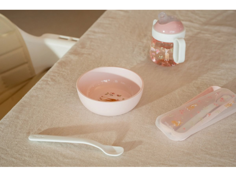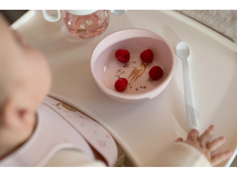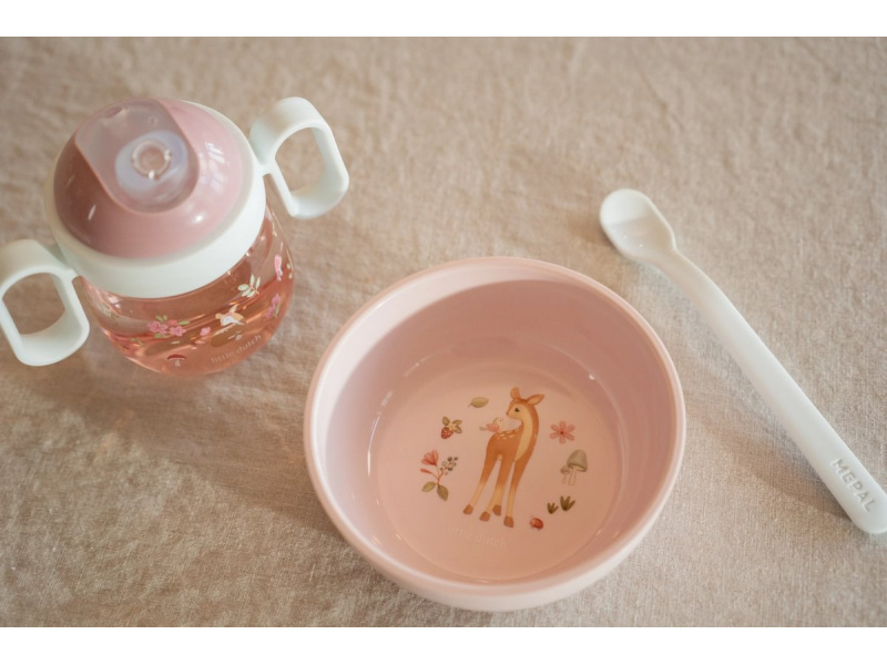 Plastové lžičky s dlouhou rukojetí jsou ideální pro první příkrmy. Mělké a úzké zakončení lžičky usnadňuje krmení miminka, dlouhá rukojeť umožňuje rodiči nabírání příkrmu i ze skleničky bez znečištění rukou. Praktické pouzdro umožňuje hygienické přenášení lžiček např. v přebalovací tašce. Lžičky jsou součástí designové kolekce hraček a doplňků pro děti Little Dutch Fairy Garden, inspirované životem na zahradě. Délka lžičky: 14,5 cm Materiál: PP, neobsahuje BPA Možno mýt v myčce. Vhodné pro děti od 4 měsíců.