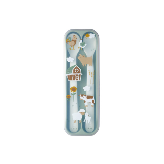 Plastové lžičky s dlouhou rukojetí jsou ideální pro první příkrmy. Mělké a úzké zakončení lžičky usnadňuje krmení miminka, dlouhá rukojeť umožňuje rodiči nabírání příkrmu i ze skleničky bez znečištění rukou. Praktické pouzdro umožňuje hygienické přenášení lžiček např. v přebalovací tašce. Lžičky jsou součástí designové kolekce hraček a doplňků pro děti Little Dutch Farma. Délka lžičky: 14,5 cm Materiál: PP, neobsahuje BPA Možno mýt v myčce. Vhodné pro děti od 4 měsíců.