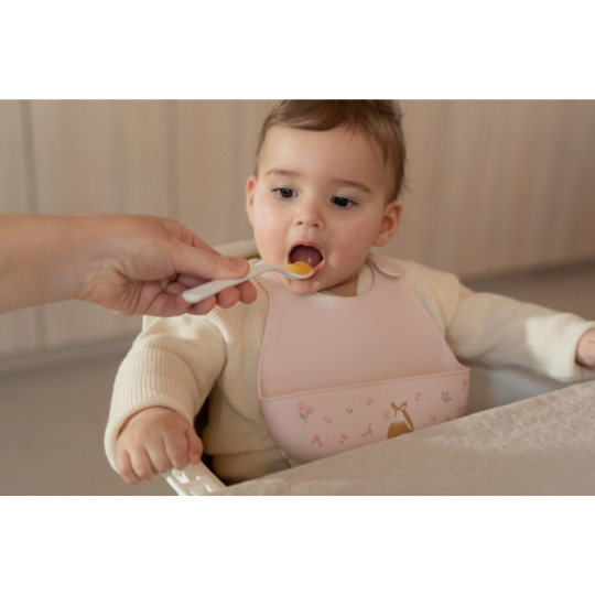 Plastové lžičky s dlouhou rukojetí jsou ideální pro první příkrmy. Mělké a úzké zakončení lžičky usnadňuje krmení miminka, dlouhá rukojeť umožňuje rodiči nabírání příkrmu i ze skleničky bez znečištění rukou. Praktické pouzdro umožňuje hygienické přenášení lžiček např. v přebalovací tašce. Lžičky jsou součástí designové kolekce hraček a doplňků pro děti Little Dutch Fairy Garden, inspirované životem na zahradě. Délka lžičky: 14,5 cm Materiál: PP, neobsahuje BPA Možno mýt v myčce. Vhodné pro děti od 4 měsíců.